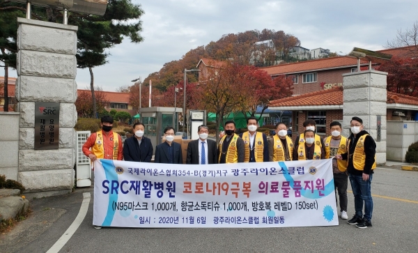 광주라이온스클럽(회장 이강섭)은 지난 6일 SRC재활병원을 방문해 800만원 상당의 방역위생 물품을 전달했다.