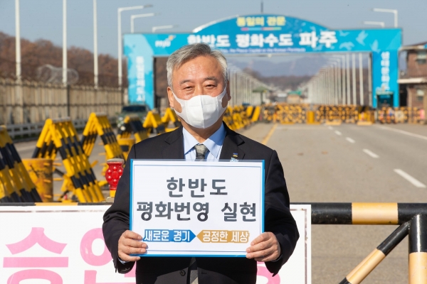 이재강 평화부지사는 10일 파주 통일대교 앞에서 온라인 기자회견을 갖고 “도라전망대 집무실 설치는 개성공단 재개선언 추진 등 경색된 남북관계에 새로운 길을 열기 위한 경기도의 정당한 행정행위”라며 “비군사적인 경기도의 고유행정에 대한 유엔사의 부당한 간섭을 거부한다”고 밝혔다.