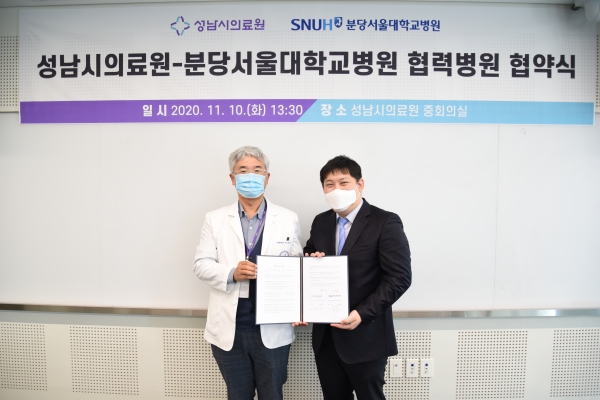 성남시의료원은 분당서울대병원과 10일 성남시의료원 중회의실에서 ‘상호 진료협력 및 의료서비스 강화를 위한 업무협약’을 체결했다.이 협약식에는 이중의 성남시의료원장, 서동범 진료협력 실무담당 교수 등 주요 관계자들이 참석한 가운데 진행됐다.