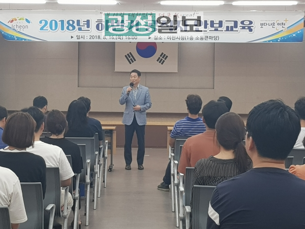 이천시(시장 엄태준)는 16일 시청대회의실에서 공직자 200여 명을 대상으로 2018년도 하반기 공직자 안보교육을 실시했다.