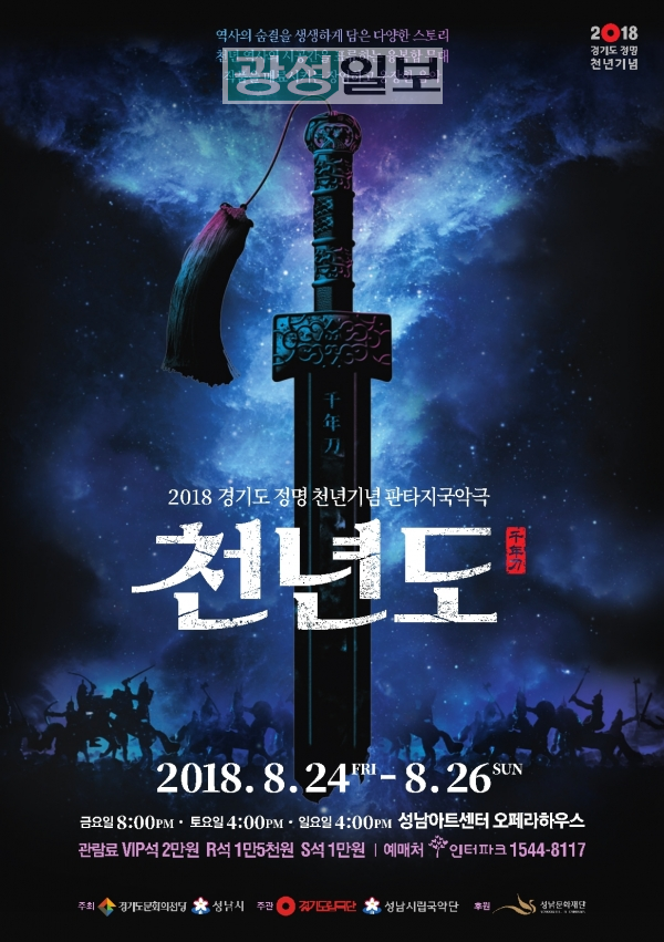 성남시와 경기도문화의전당이 공동주최하고 성남문화재단이 후원하는 2018 경기도 정명 천년기념 판타지 국악극 <천년도>가 오는 8월 24일부터 26일까지 성남아트센터 오페라하우스에서 선보인다.