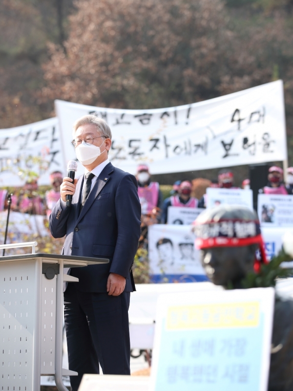아울러 이 지사는 “‘사람은 기계가 아니다’라고 외친 열사의 말처럼 노동자는 돈을 벌기 위한 수단이나 기계의 부품이 아니라 모든 인간 활동의 목표인 인간 그 자체”라며 “그럼에도 택배노동자들 처럼 새로운 유형의 노동자들이 살기 위해 죽어가고 있는 역설이 현실이다. 이 현실을 반드시 이겨 내겠다. ‘내 죽음을 헛되이 하지 말라’는 뜻을 이어가겠다”고 말했다.