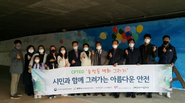 이번 셉테드(CPTED) 사업은 광주시 파발교 하단 벽화 그리기 및 파발교 ~ 송정교 사이 통행로(약 350m) 페인트 작업을 실시한 것으로 송정동행정복지센터, 광주시자원봉사센터와 협업으로 직접 벽화 시안 및 도색 작업을 진행하였으며 노루페인트(주)가 페인트를 지원하는 등 총 4개 민관 단체가 참여하는 협력사업으로 이루어졌다.