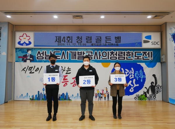 성남도시개발공사는 청렴문화조성을 위해 부서 대표 직원 등을 대상으로 ‘제4회 청렴골든벨 퀴즈 대회’를 코로나19 방역 수칙을 준수하며 탄천종합운동장 이벤트 홀에서 개최했다고 19일 밝혔다.