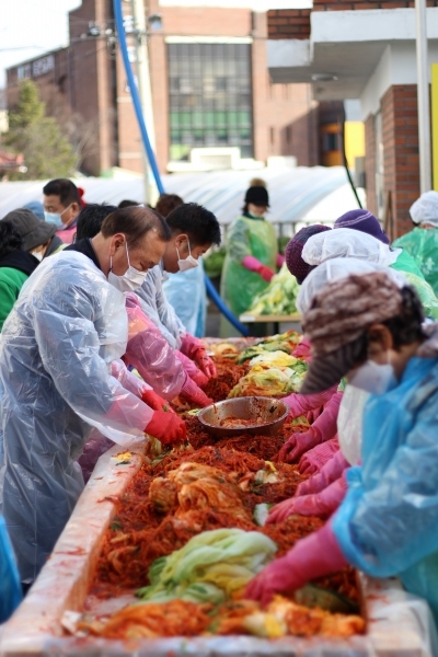 용인시 처인구 이동읍은 23~24일 이틀에 걸쳐 새마을부녀회 주관으로 ‘사랑나눔 김장 행사’를 열었다고 밝혔다.새마을부녀회, 새마을지도자협의회 회원 등 50여명은 23일 배추를 절이고 재료를 다듬어 24일 1000포기 분량의 김치를 담갔다. 이날 담근 김치는 관내 홀로어르신 등 취약계층 120가구에 전달했다.