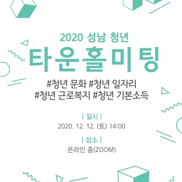 성남시청소년재단(대표이사 진미석)은 ‘2020년 청년 타운 홀 미팅’을 오는 12일 오후 2시부터 온라인 화상프로그램으로 개최한다.