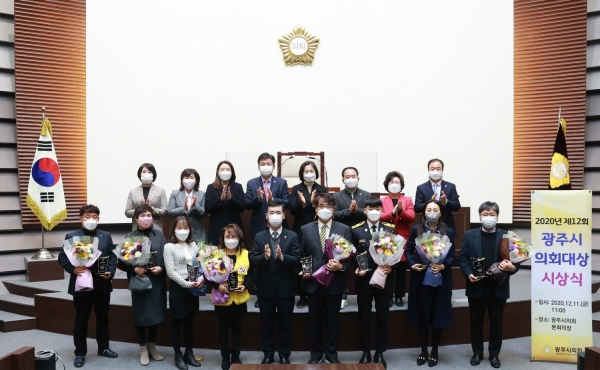 한편, 광주시의회대상은 지역사회 및 의회발전에 기여한 시민과 공무원을 선발ㆍ시상하는 상으로 지난 2005년부터 시작하여 올해로 12회째를 맞이했으며,이번 시상식은 코로나19 방역수칙을 철저히 준수하고 참여인원을 최소화하여 진행됐다.