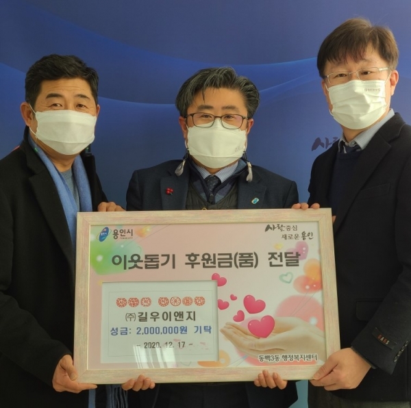 이날 기탁된 성금은 이·통장들이 십시일반으로 모아 마련한 것이다.같은날 처인구 포곡읍에선 직원들이 2020년 생활 공감 시책 우수사례로 선정되어 받은 업무 포상금 50만원을 관내 노부모가 모두 치매를 앓고, 세 자녀가 장애와 질병에 시달리고 있는 한 가정에 전달했다.