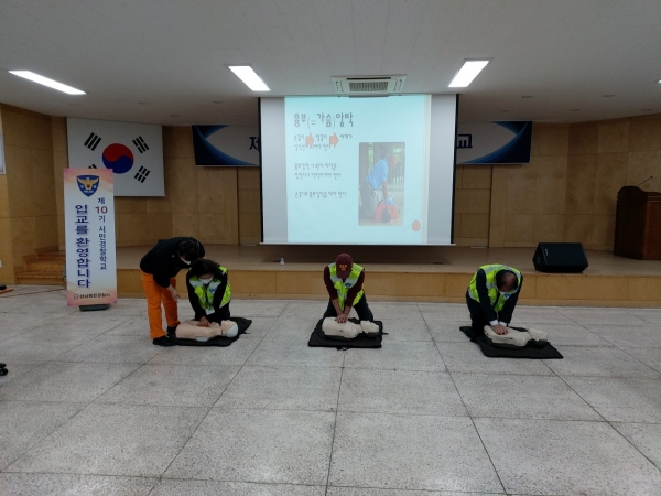 교육내용은 ▲심폐소생술(CPR) 이론 및 실습 교육 ▲기초 응급처치 ▲119신고방법 등으로 진행해 각종 안전사고 발생 시 대처할 수 있는 능력을 키우는 시간을 가졌다.