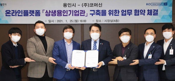 용인시는 25일 관내 소재‧부품‧장비 중소기업의 판로 개척을 위해 기계산업 온라인 플랫폼 운영사인 (주)코머신과 ‘상생용인기업관’을 구축하는 협약을 맺었다고 밝혔다.