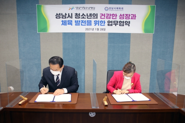성남시청소년재단과 성남시체육회는 지난 28일 성남시 청소년의 건강한 성장과 스포츠 활성화를 위한 업무협약을 체결하였다.성남시청소년재단에서 진행된 이번 협약식에는 진미석 대표이사와 성남시체육회 이용기 회장을 포함한 양 기관 관계자가 참석하였다.