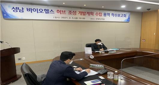 성남시는 5일 시청 산성누리실에서 ‘성남 바이오헬스 허브 조성 개발계획 수립 용역’ 착수보고회를 개최했다. 이날 보고회는 바이오헬스 벨트 구축 자문위원인 워킹그룹을 비롯해 업무 관련 공무원, 시 산하 출연기관 등 20여 명이 참석했다.
