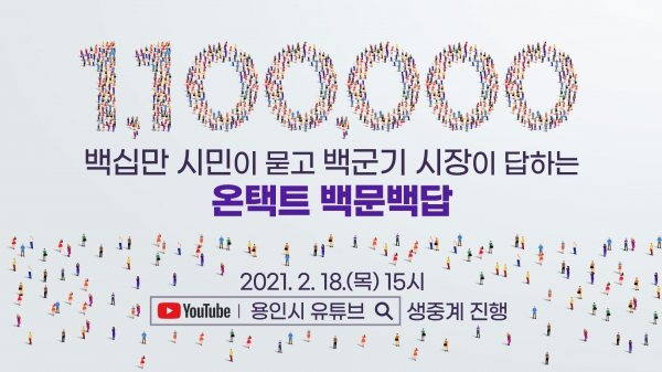 용인시는 오는 18일 오후 3시 ‘백십만 시민이 묻고 백군기 시장이 답하는 온택트 백문백답’을 개최한다고 14일 밝혔다.이날 용인시 공식 유튜브 채널을 통해 생중계되는 온택트 백문백답은 ‘2021년 시민과의 대화’의 일환으로 마련했다.