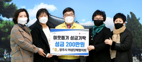 광주시 여성단체협의회는 16일 관내 어려운 주민들을 위한 이웃돕기 성금 200만원을 광주시에 기탁했다.