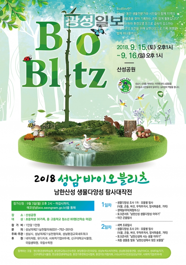‘성남시(시장 은수미)는 오는 9월 15~16일 중원구 은행동 남한산성 일대에서 1박 2일간 ‘2018 성남 바이오블리츠’ 행사를 연다.
