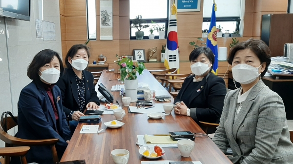 경기도의회 문경희 부의장(더민주, 남양주2)은 김경희(더민주, 고양6)·전승희(더민주, 비례), 김유임 청와대 여성가족비서관과 함께 ‘3.8 세계 여성의 날’을 기념하여 여성들의 인권 강화, 장애여성기본법 제정의 필요성, 아동학대 예방을 위한 인식개선 교육 강화 관련 정담회를 개최했다.