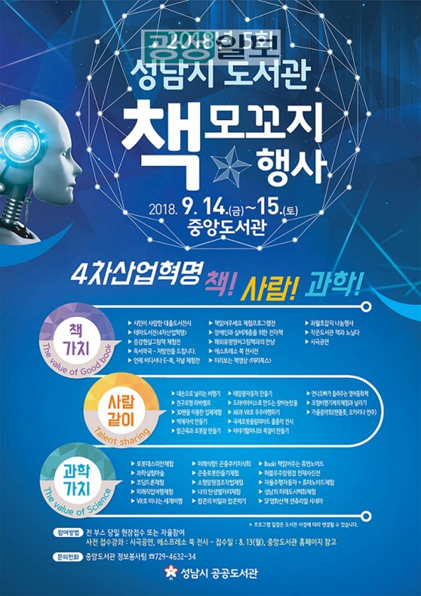 시민이 사랑한 대출도서 전시, 증강현실 그림책 체험, 책 읽어주는 인공지능 로봇 체험, 학습동아리 스스로 축제, 문해교육 시화전, 이지성 작가의 성남행복아카데미 제14강, 성남시민 톡투유 등이다.