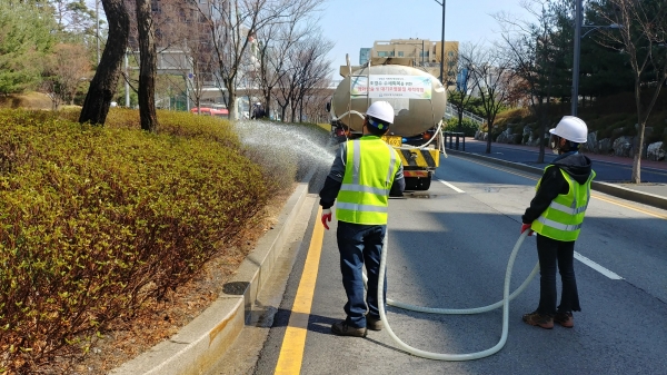 성남시 분당구는 새봄을 맞아 중앙분리대 등 주요도로변 내 수목에 대한 세척작업을 실시한다