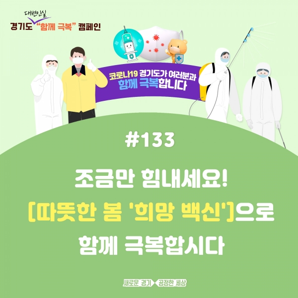 한편, 9일 0시 기준, 경기도 확진자 수는 전일 대비 188명 증가한 총 2만5,076명으로, 도내 25개 시군에서 확진자가 발생했다. 9일 0시 기준, 경기도 예방접종자 수는 총 8만5,119명으로, 접종동의자 15만1,855명 대비 56.1%다. 세부적으로 요양병원 3만7,498명, 노인요양시설 및 재활시설 1만3,150명, 코로나 1차 대응요원 1,526명, 코로나 전담병원 344명, 정신의료기관과 고위험의료기관 3만2,601명이다.