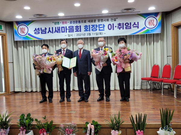 성남시 분당구 야탑동 소재 새마을회관 3층 대회의실에서 회장단 이‧취임식을 개최했다.