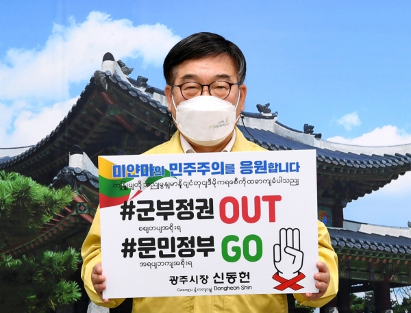 신 시장은 “대한민국도 과거 두 번의 쿠데타로 인한 군부독재 속에서 민주화를 위한 국민들의 열망으로 군사정권을 종식시키고, 사상초유의 국정농단사태를 규탄하는 촛불시위를 통해 민주주의의 가치를 지켜냈다”며 “민주주의를 지켜낸 우리의 경험과 지혜를 미얀마와 민주화를 염원하는 세계 각국과 함께 나누기를 희망하고, 40만 광주시민을 대표해 미얀마 국민들을 응원한다”고 말했다.