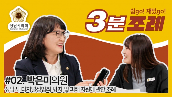 성남시의회(의장 윤창근)는 ‘성남시의회 3분 조례’ 두 번째 영상을 SNS에 게시했다.이번에 소개된 조례는 박은미 의원 등 30명이 공동발의한 ‘성남시 디지털성범죄 방지 및 피해 지원에 관한 조례’이다. 해당 조례는 최근 증가하고 있는 디지털 성범죄를 예방하고 범죄 피해를 입은 사람에 대한 지원 체계를 마련하고자 발의되었으며, 지난 2월 19일부터 시행됐다.