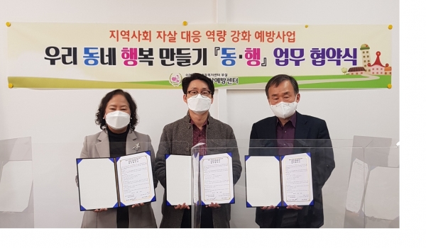 지역사회 자살대응 역량강화 및 생명존중 문화조성을 위한‘우리 동네 행복만들기’업무협약 식을 체결하였다.
