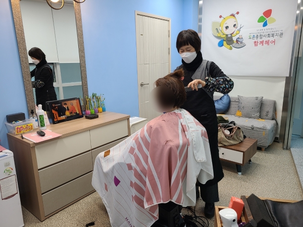 성남도촌종합사회복지관(관장 이종민)이 지역 내 장애인을 대상으로 장애인 전용미용실 함께 헤어(hair)와 장애인 부모대상 이·미용 기술 교육 엄마쌀롱(salon) 운영을 재개했다.