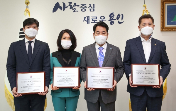 백군기 용인시장이 22일 오렌지카운티 한국전참전용사 기념비 건립위원회로부터 감사패를 받았다.