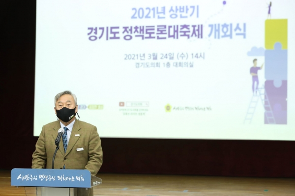 이재강 경기도 평화부지사는 개회사를 통해 “지방 분권시대를 맞아 경기도의 지역적 강점과 특징을 살려 경쟁력을 발휘할 수 있는 정책들을 개발하는 상반기 정책토론 대축제의 장이 만들어졌다”며 “공론의 장에서 코로나19로 힘들어하는 도민들을 더 잘 살게 만들 기회가 될 수 있도록 현장의 목소리를 담아낼 수 있으면 좋겠다”고 말했다.