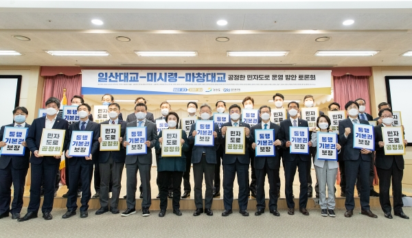 정성호 의원 등 국회의원 35명이 공동 주최하고 경기도와 경기연구원, 강원도가 공동 주관한 이날 토론회에는 윤호중 국회 법제사법위원장 등 17명의 국회의원이 참석했으며, 과도한 통행료로 문제가 되고 있는 일산대교와 강원도 미시령터널, 경상남도 마창대교 등 민자도로 관련 행정기관 관계자들과 고양·파주·김포시장이 함께했다.