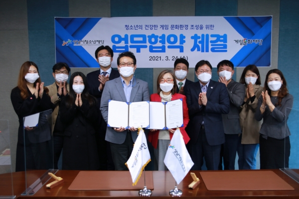 성남시청소년재단(대표이사 진미석)은 게임문화재단(이사장 김경일)과 3월 24일, 청소년의 건강한 게임 문화환경 조성을 위한 업무협약을 맺었다.