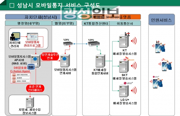 성남시의 지능형 온라인 등기발송 시스템은 통신 3사가 보유한 이동 전화번호의 암호화 값이 연동돼 있다. 내부행정망인 지방세·세외수입 체납액 통합안내 시스템과도 연동돼 체납자 개인 모바일로 바로 통지할 수 있는 구조다. 이러한 시스템 구축은 전국에서 성남시가 처음이다.