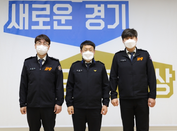 분당소방서 소속 강동석, 최영호, 이우승 소방관은 지난 8일 저녁 18시 50분경 퇴근길에 성남시 분당구 서현동 한 건물 지상 1층 필로티 주차장 실외기 쪽에서 연기를 발견했다.