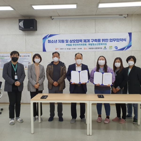 이날 업무협약은 주민자치위원회가 부발읍 주민의 참여와 자치를 기반으로 지역 내 청소년기관과 유기적으로 협력해 지역사회 발전을 이끌어 가기 위해 추진되었다.