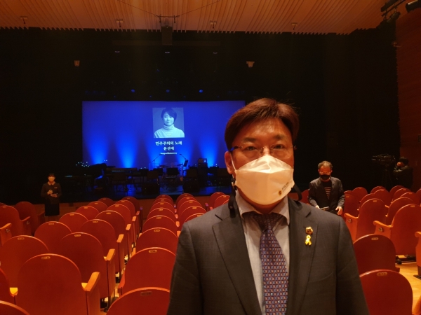 경기도의회 문화체육관광위원회 최만식 위원장(더불어민주당, 성남1)이 성남아트센터 앙상블시어터에서 열린 ‘민주주의의 노래’ 음원 발매 기념 쇼케이스에 참석해 자리를 빛냈다.