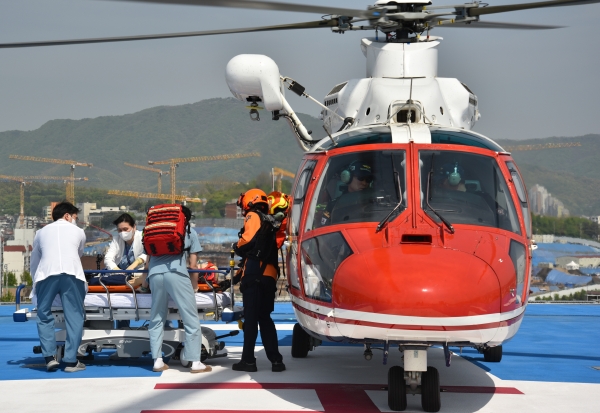 또한 훈련사항은 성남시 및 인근지역에서 헬기이송이 필요한 응급환자 발생을 대비하고자 중증외상환자 이송 및 산악구조를 주제로 실시했다.