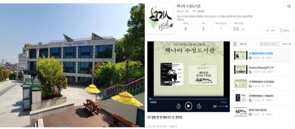 성남도시개발공사(사장 윤정수, 이하 공사)에서 운영하는 수정도서관은 팟빵 팟캐스트 채널 책나라 수정도서관‘ 방송을 운영한다.