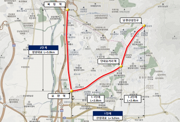 성남시(시장 은수미)는 산성대로 S-BRT 사업(L=5.2km, 모란역~남한산성입구)을 성남대로(L=5.0km, 모란역~복정역)까지 확대하고 사업기간도 단축 추진한다.