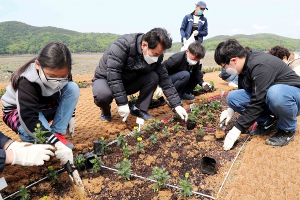용인시는 지난 1일 기흥저수지 제2매립지에서 ‘기흥호수 물빛정원’조성을 위해 시민 180명이 함께 봄꽃 7200본을 심는 행사를 열었다.