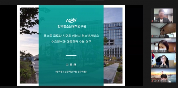 성남시 청소년서비스 수요분석과 대응전략 수립 연구」착수보고회를 온라인으로 개최하였다.