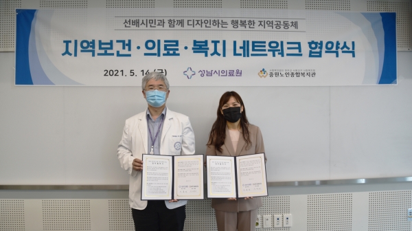 이중의 성남시의료원장은 “중원노인종합복지관과의 협력으로 시민의 건강 향상에 기여하는 공공의료기관으로 역할을 다하겠다”라고 말했다.신명희 중원노인종합복지관장은 “성남시의료원과 협력체계를 기반으로 다양한 건강욕구를 해소하며, 안전한 지역사회를 조성할 수 있도록 의미있는 역할을 하겠다”라고 전했다.협약식은 코로나19 방역기준에 맞춰 마스크 착용, 사회적 거리두기 등 방역수칙을 철저히 준수하며 진행됐다.