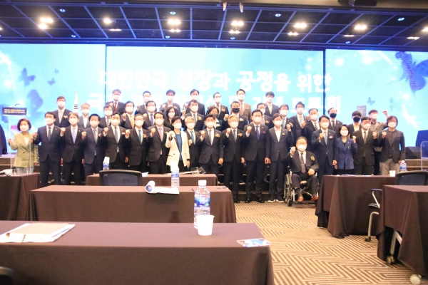 ‘대한민국 미래비전, 성장과 공정을 중심으로’ 주제로 창립기념토론회 진행, 송영길 더불어민주당 당대표, 이재명 경기도지사 현장 축사