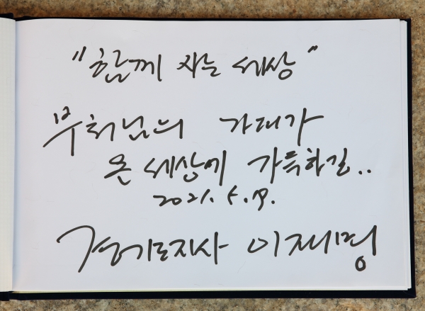 그러면서 “불교계 협조 덕분에 코로나 위기를 잘 넘어가고 있어 불교계 지도자 및 불자 여러분에게 각별히 감사 말씀드린다”며 “부처님의 가피(자비의 힘으로 중생을 이롭게 하는 일)가 불자 여러분 가정에 가득하고 모두 성불하시기를 바란다”고 덧붙였다.