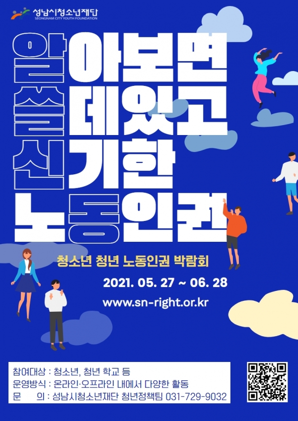 성남시청소년재단은 청소년, 청년들이 올바른 노동인권에 대해 스스로 의식하고 건강하게 성장할 수 있도록 ‘제4회 청소년·청년 노동인권박람회 「알·쓸·신·동」’을 온 · 오프라인으로 개최한다고 밝혔다.