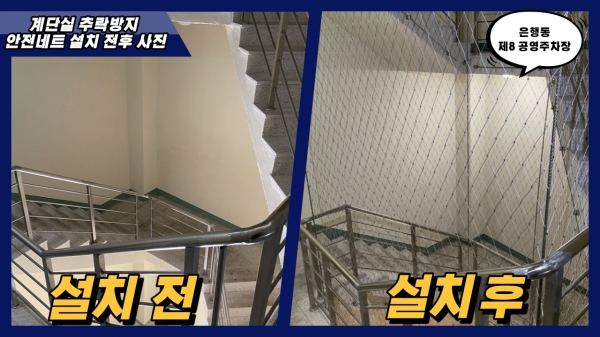 은행동제8공영주차장 계단실 중앙부의 빈 공간을 통해 발생할 수 있는 추락사고 예방을 위해 안전네트를 설치했다고 밝혔다.