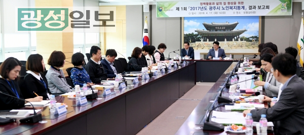 광주시(시장 조억동)는 지난 17일 시청 상황실에서 노인복지업무 관련분야 팀장 30여명이 참석한 가운데 제1회 ‘2017년 광주시 노인복지통계’결과 보고회를 개최했다.