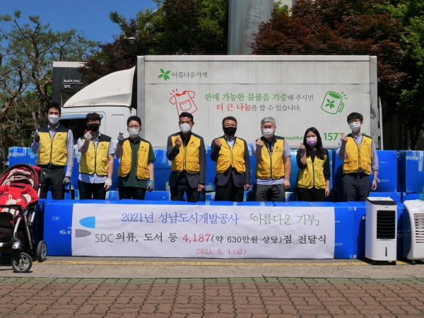 성남도시개발공사(사장 윤정수, 이하 공사)는 사회 취약계층을 돕기 위해 임·직원이 기증한 물품을 재단법인 아름다운가게에 전달했다고 7일 밝혔다.