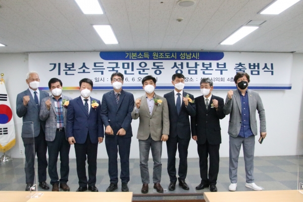 기본소득국민운동 성남본부가 6일(일) 오후 2시, 성남시의회 4층 세미나실에서 출범식을 갖고 “기본소득 민주주의 실천”을 다짐했다.지난 3월 29일 기본소득국민운동 경기본부 출범에 이어, 5월 수원본부와 6월 부천본부에 이은 경기도 31개 시·군 중 세 번째 출범이다.
