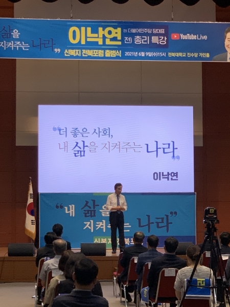 이낙연 전 대표를 차기 대통령으로 당선시키기 위한 전북지역 지지모임인 ‘내 삶을 지켜주는 나라 - 신복지 전북포럼(이하 신복지전북포럼)’은 9일 전라북도 전주 전북대에서 1만3천여명이 넘는 지역의 주요 인사들이 대거 발기인으로 참여한 창립총회를 갖고 ‘이낙연 대통령 만들기’ 활동에 본격 돌입했다. 회원 가입 목표는 3만명이다.